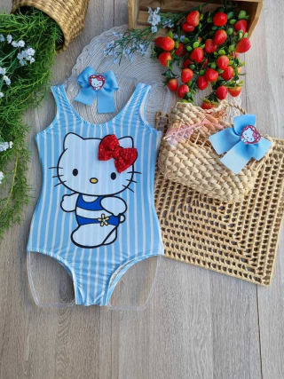 Maiô Hello Kitty + saída de praia (maiô forrado, saída de praia)